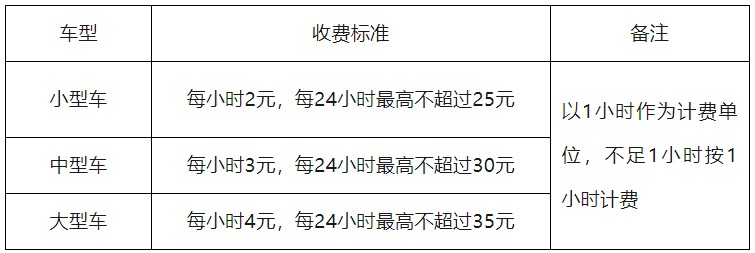 停車時間不超過1小時(含)不收費,新能源汽車不超過2小時(含)不收費,超過免費時長后: