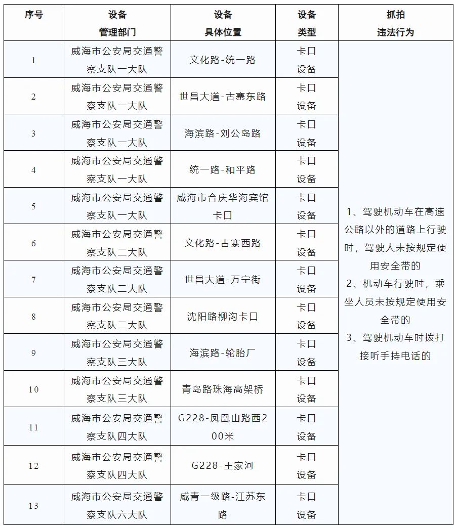 為保障道路交通安全,預(yù)防和減少交通事故的發(fā)生,根據(jù)《中華人民共和國道路交通安全法》及其實(shí)施條例等法律法規(guī)和相關(guān)技術(shù)規(guī)范的規(guī)定,依據(jù)《公安機(jī)關(guān)執(zhí)法公開規(guī)定》,現(xiàn)將新增的13處交通技術(shù)監(jiān)控設(shè)備予以公示,自2024年9月1日起,將對(duì)有關(guān)交通違法行為進(jìn)行依法管理,請(qǐng)廣大道路交通參與者自覺遵守相關(guān)法律法規(guī),共同維護(hù)良好的道路交通秩序。