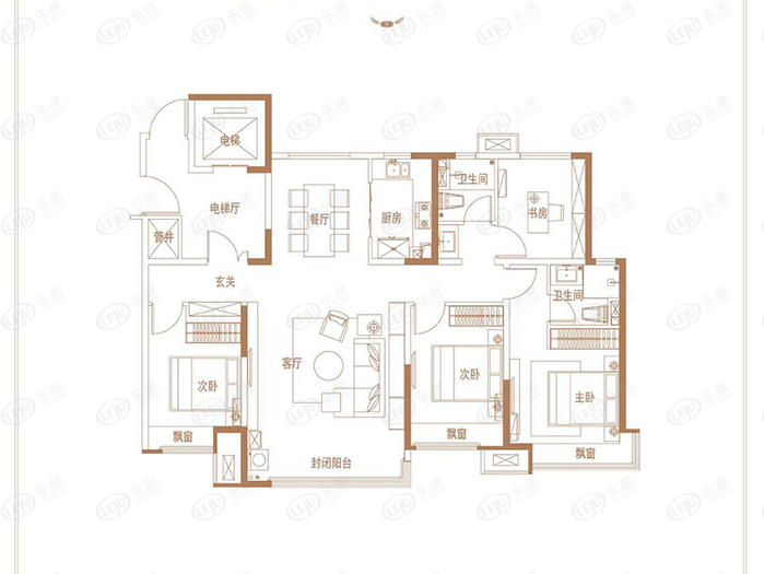 J戶型-四居室-建面142㎡