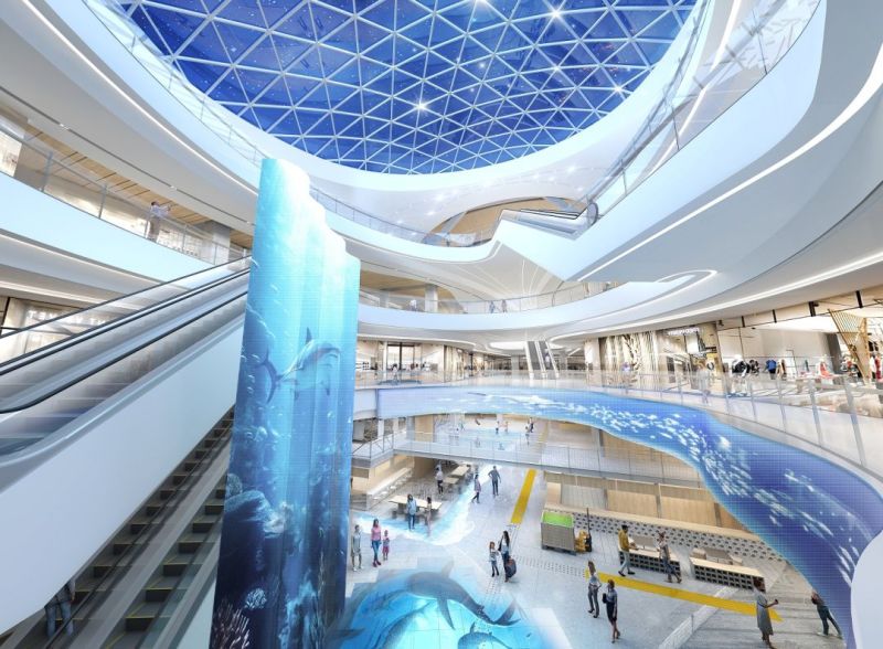 鯤鵬水擊,浩浩湯湯。威海灣城市綜合體以“鯨魚出?!睘殪`感,其中“鯨脊”部分為大跨度拱結構配合預應力空心樓板構成,為全國首創(chuàng),其背后蘊含的包容、博愛、拼搏等海洋文化,也為該項目增添了學養(yǎng)深厚的極致韻味。定位城市功能新提升、城市形象重塑造的威海灣城市綜合體,致力于創(chuàng)造一個多元化的現(xiàn)代城市商業(yè)空間。